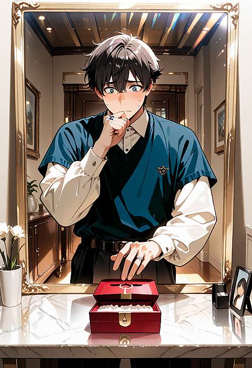 一个黑色柜台出现在微弱的火光中,彰三将蜡烛举高,一副较大的相框出现在柜台上方的墙上。